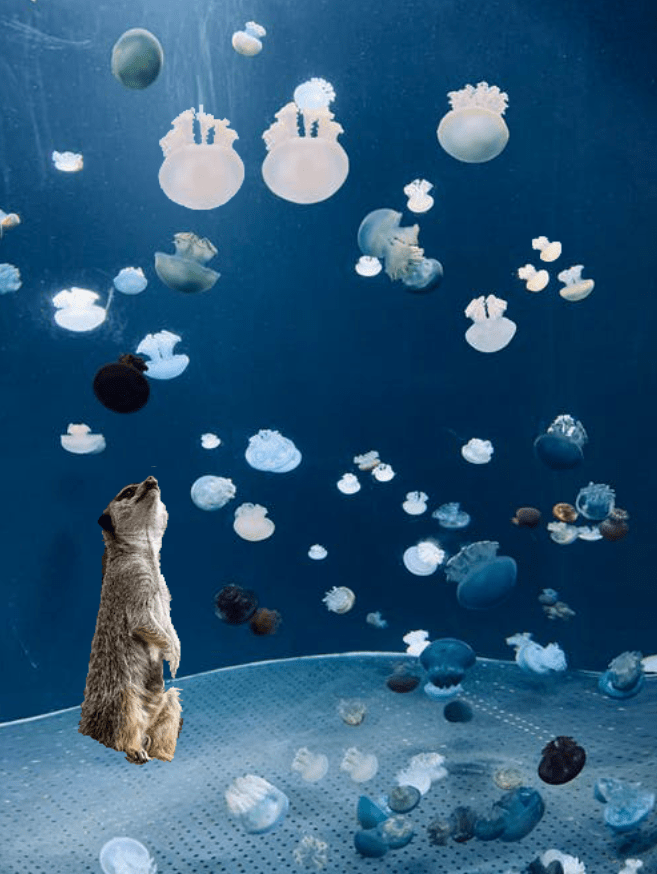 Ik ga nu het stokstaartje naar de kwallen verplaatsen. Dat moet je doen door het stokstaartje, de laag te selecteren en te verplaatsen naar de kwallen.